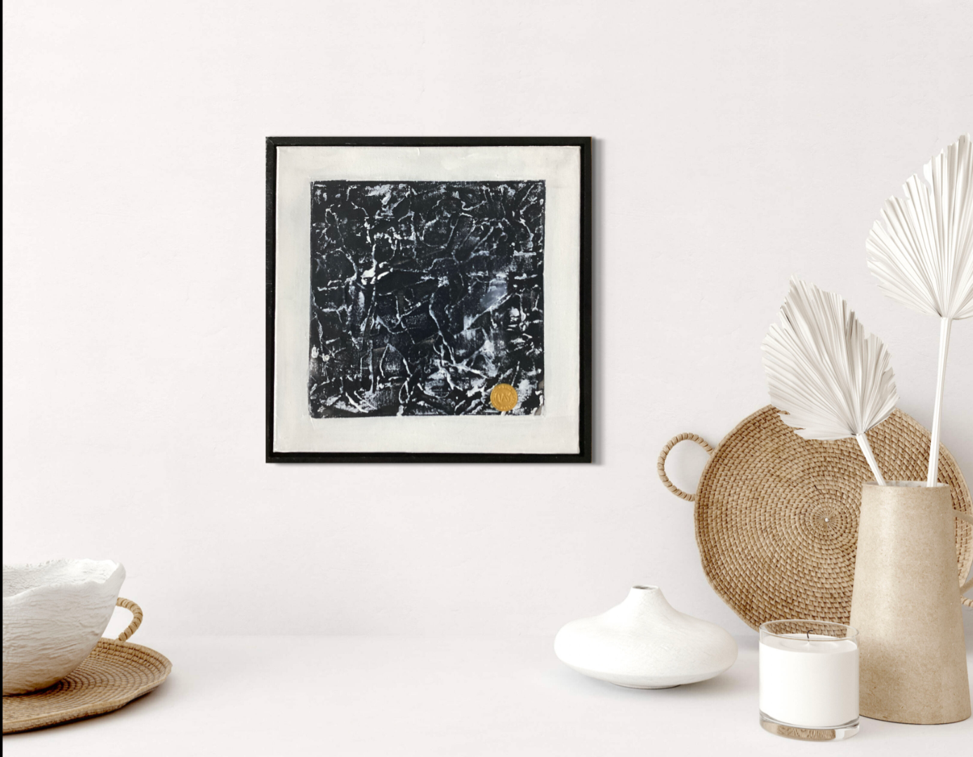 Introducing “Crazy Pave,” a captivating piece from my mini black-and-white art series. Crafted intuitively with a palette knife, this artwork celebrates the spontaneity and joy of creation through bold textures and intricate patterns. The interplay of black and white captures a dynamic energy, evoking a sense of movement and rhythm. While painting, I had no specific image in mind, allowing the art to evolve organically. Upon reflection, the textured strokes reminded me of the unique crazy paving surrounding my sister’s fire pit, adding a personal touch to this abstract masterpiece. Perfect for collectors who appreciate the raw beauty of intuitive art.