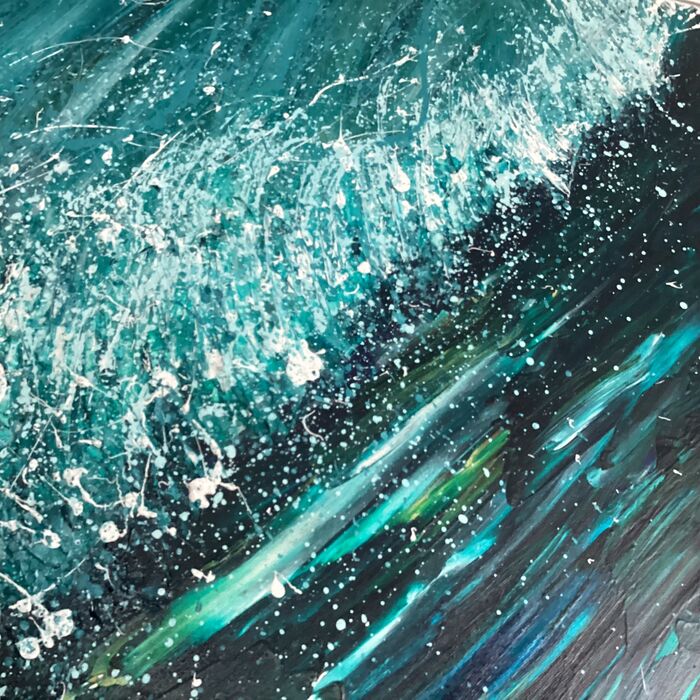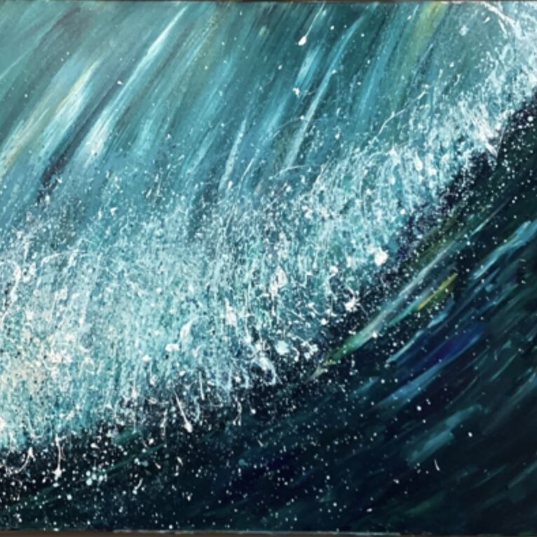 "‘Endless Summer’ invites you to lose yourself in the heart of the ocean. This acrylic on canvas piece swells with vibrant hues of blue and green, pulling you into the embrace of the sea. The wave, alive with energy and motion, creates an immersive experience—one that makes you feel as though you are drifting within its depths. The textured surface of the canvas further amplifies the feeling of immersion, allowing the wave to not only be seen but almost felt, as if the ocean itself is reaching out to you. It’s a moment suspended in time, where the warmth of summer and the rhythm of the water meet in harmony."