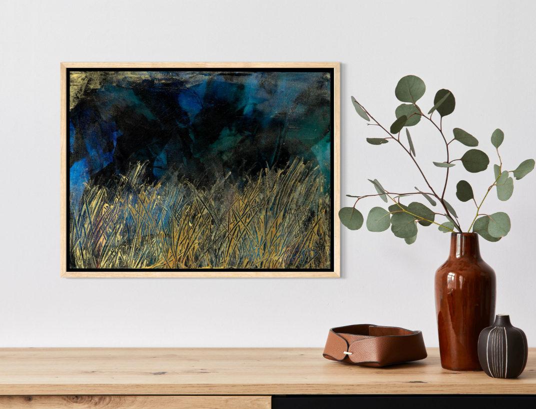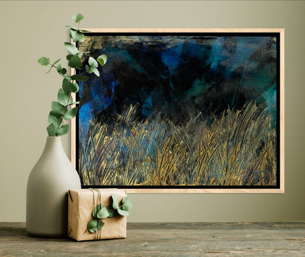 I love how the alcohol ink changes slightly in colour depending on the light source as it reminds me of watching a storm front and how the sky changes. The fields of golden wheat swaying gently in the breeze whilst dark skies above are a reminder to take shelter before the storm hits. Compliment this stunning piece with “The Wild before the Storm 1 & 3”. Colour changes slightly depending on light source.